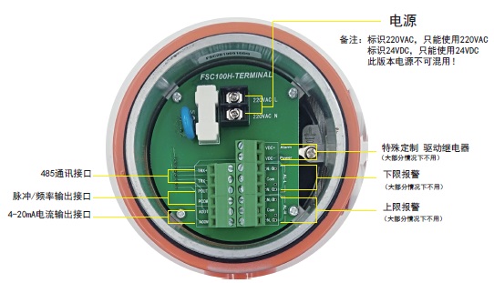電磁式流量計(jì)圓型轉(zhuǎn)換器接線(xiàn)端子功能定義,見(jiàn)圖 3-3b