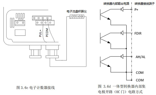 1.5 頻率(脈沖)、上下限報(bào)警、流向標(biāo)示等輸出均為集電極開路的電平輸出信號。